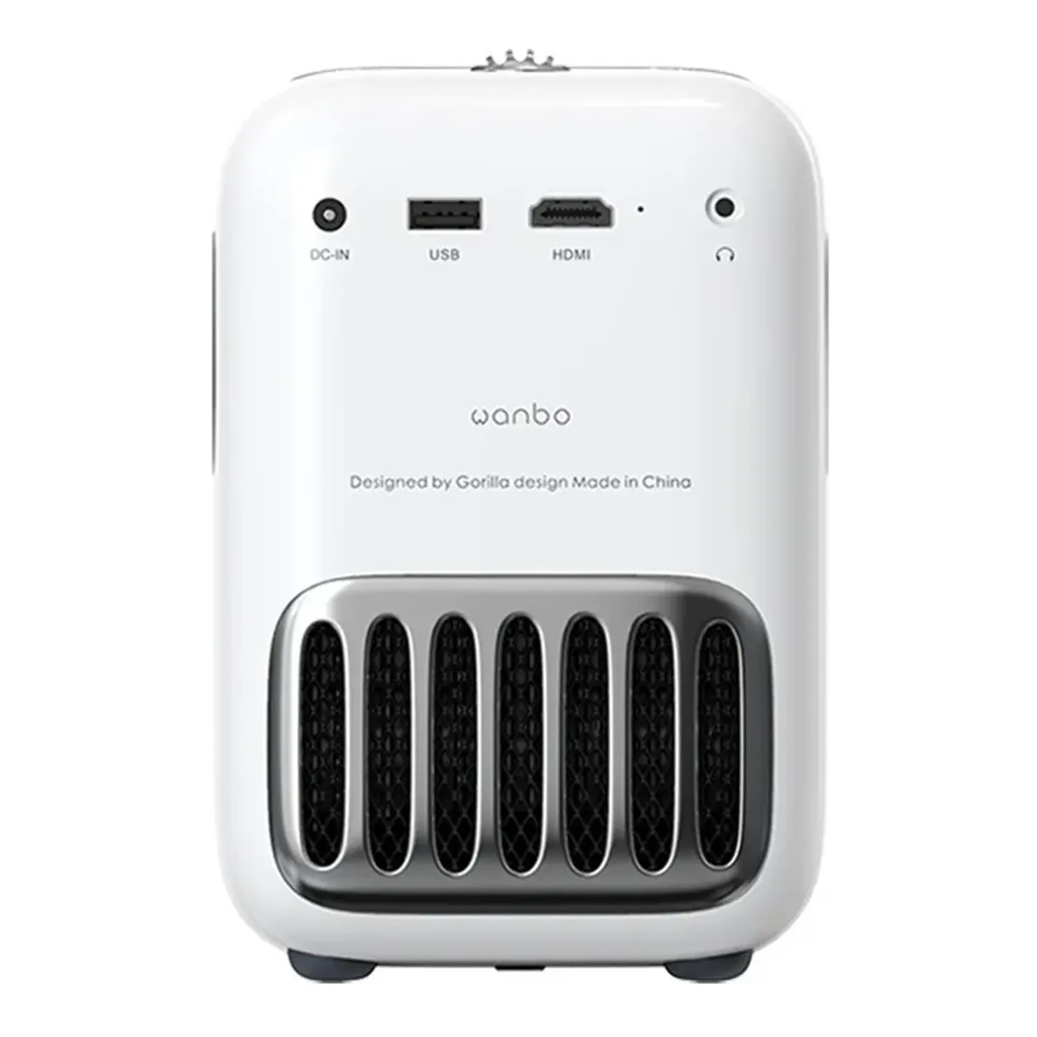 Especificaciones técnicas: Marca: Wanbo. Modelo: T2R Max. Procesador: MTK 9269 Quad Core. RAM: 1GB DDR4. Almacenamiento: 16GB. Sistema operativo: Android 9.0 (Pie). Fuente de luz: LED. Tecnología de proyección: LCD. Brillo: 350 lm ANSI. Resolución máxima soportada: 1920 x 1080 px. Relación de pantalla: 16:9. Tiempo de vida de la luz: 20.000 horas. Foco manual. Ratio de proyección: 1.35:1. Dimensiones de la imagen: 40-120 pulgadas. Decodificación HDR10+ y HDR10. Corrección Keystone en cuatro direcciones. Conexiones inalámbricas: WiFi 2.4GHz, Bluetooth v4.0. Interfaz: 1 HDMI, 1 USB 2.0, 1 Jack 3.5, 1 Conexión de corriente. Funciones: proyección en techo, 2 altavoces de 3W, control por voz, enfriamiento con 3 ventiladores y radiadores duales.