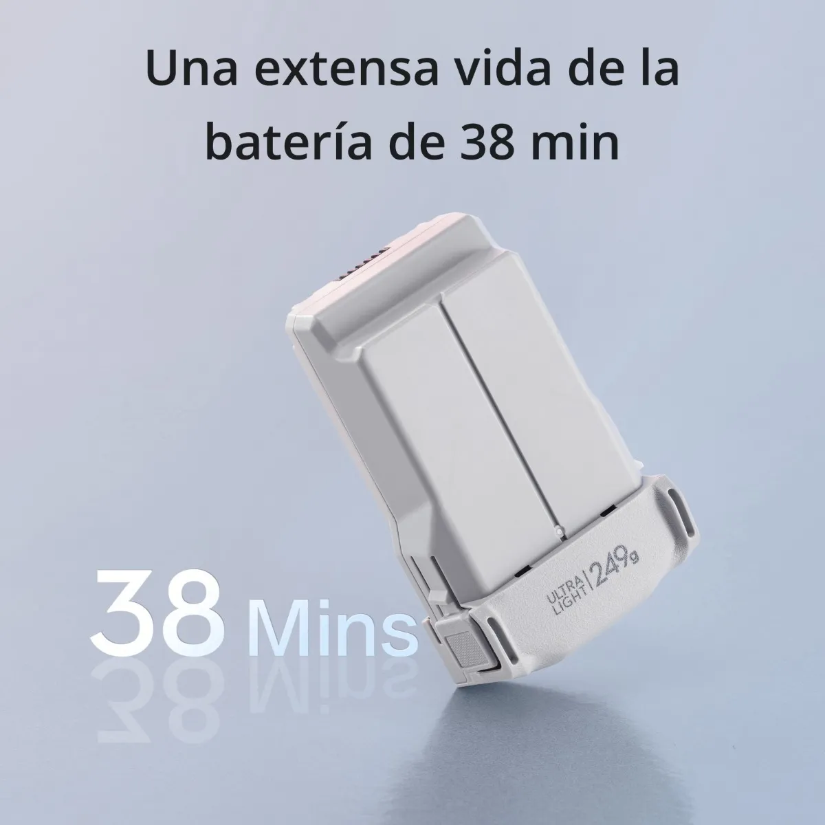 1. Medido a una velocidad constante de 21.6 km/h y sin viento. Con la batería de vuelo inteligente, la aeronave puede volar hasta 38 min. Antes de volar, consulta las leyes y normativas locales y respétalas en todo momento.